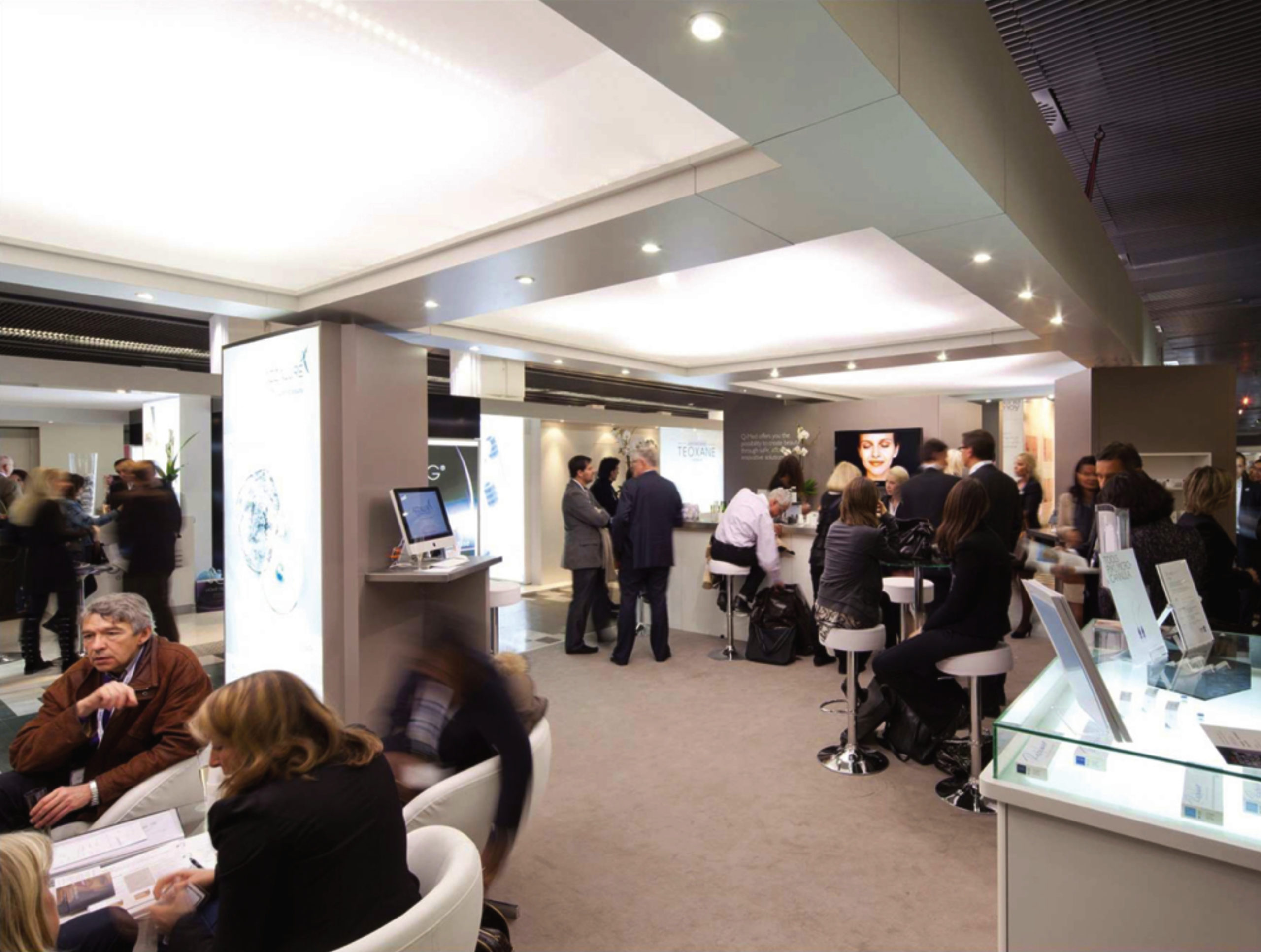 To achieve these objectives, our approach began with an artful revamp of the existing lighting grid structure. We meticulously diffused the open spaces, enveloping the booth in a soothing and beauty-enhancing glow. Embracing the support columns of the grid, we alternated between striking billboards and captivating product displays, ensuring that the new product line took center stage.